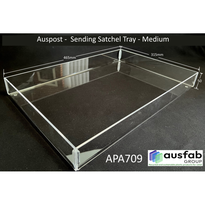 Clear Acrylic Tray for Sending Satchels - 465mm D x 315mm Wide x 50mm high