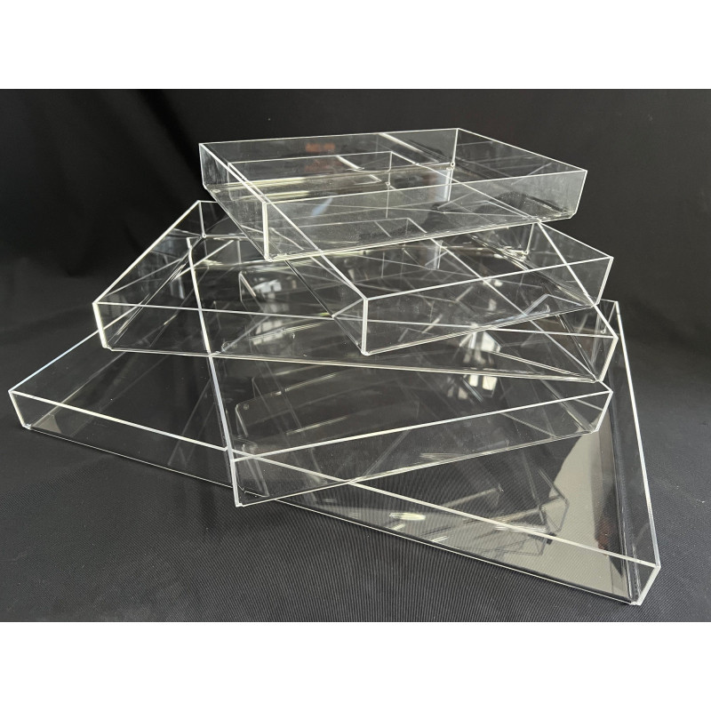 4 x Extra Small - Clear Acrylic Tray for Sending Satchels - 340mm D x 230mm Wide x 50mm high