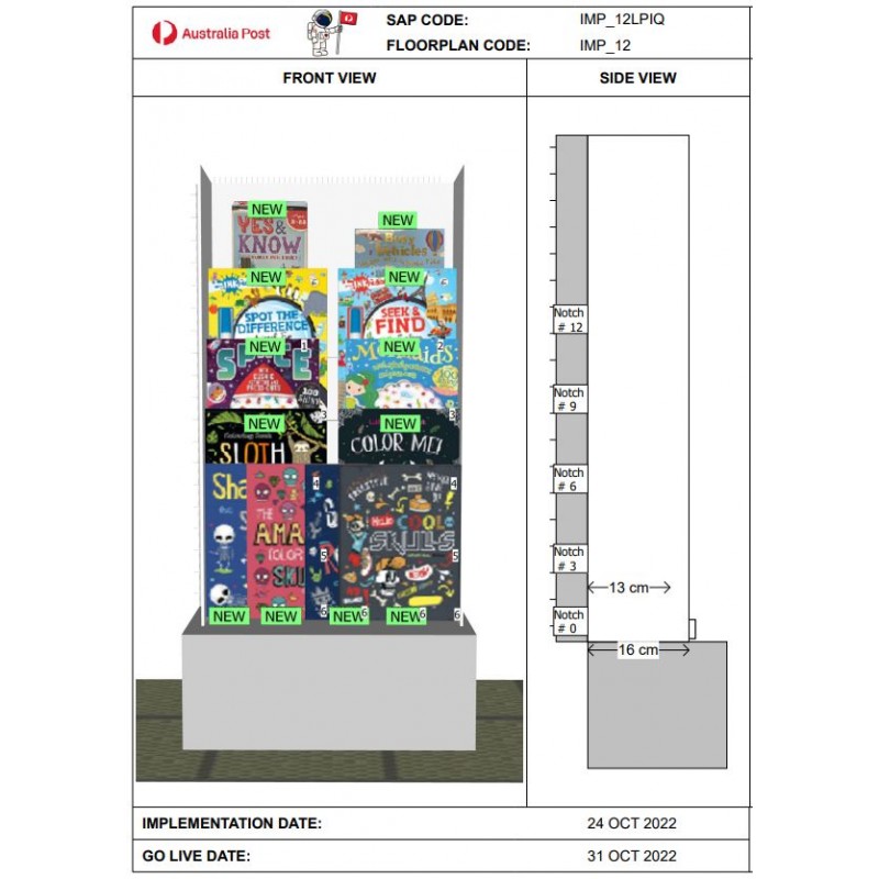 Click here to view or download the planogram - Impulse Queue Unit 12 (Double Sided Unit) – Kids Books