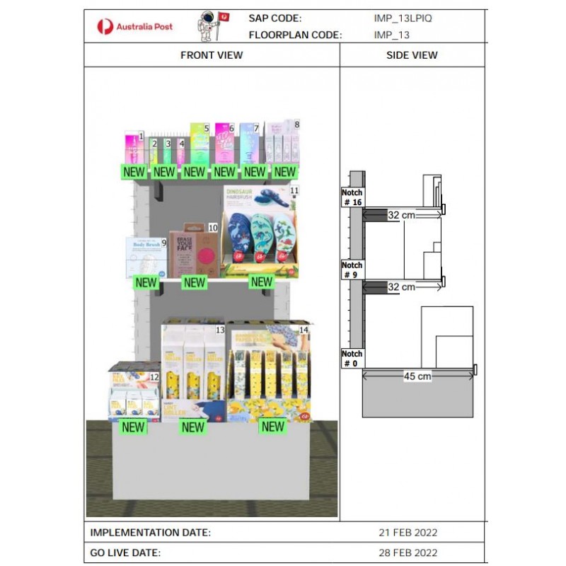 Click here to view or download the planogram - Impulse Queue Unit 13 (Single Sided IMP_13 Unit) – Health & Beauty