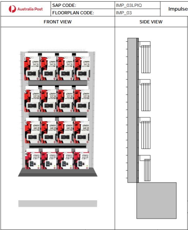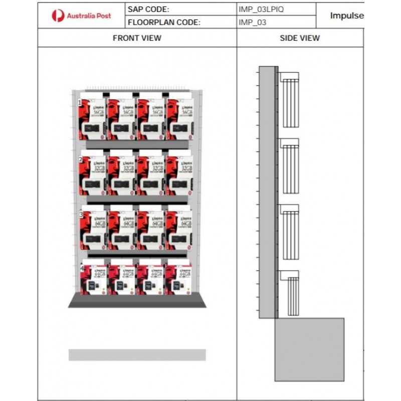Click here to view or download the planogram - Impulse Queue Unit 3 (Double Sided Unit) - Data Storage
