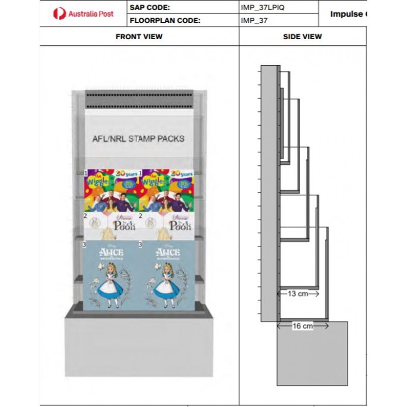 Click here to view or download the planogram -Impulse Queue Unit 37 (Double Sided Unit) - Philatelic Promo