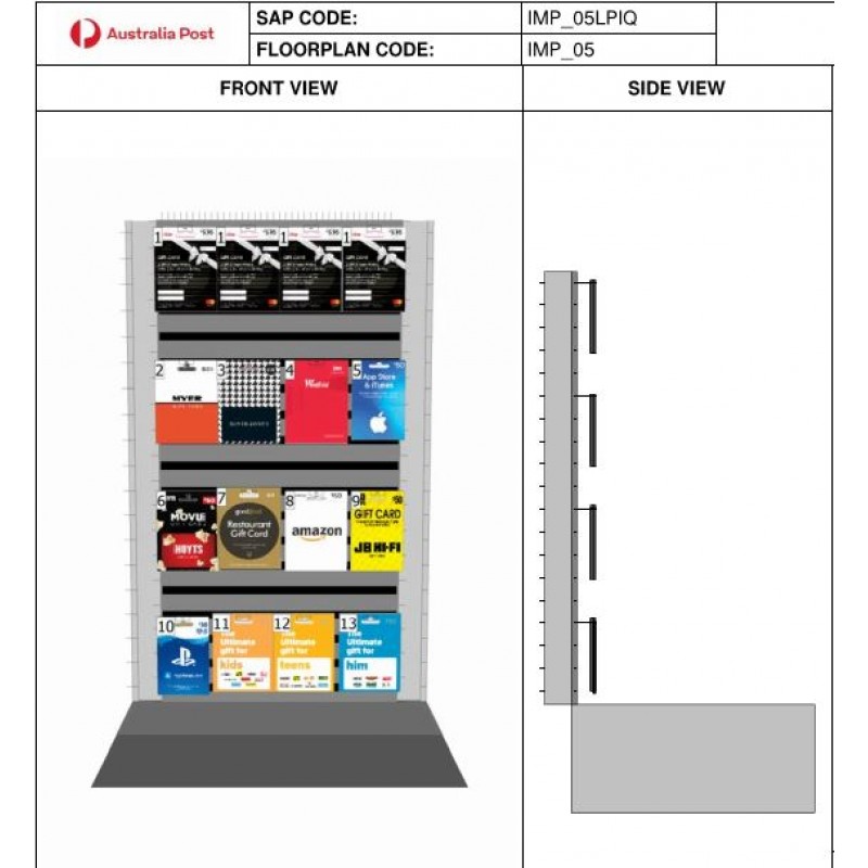 Click here to view or download the planogram - Impulse Queue Unit 5 - 16 Peg Gift Cards