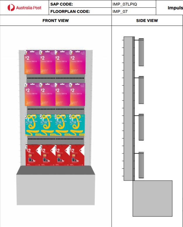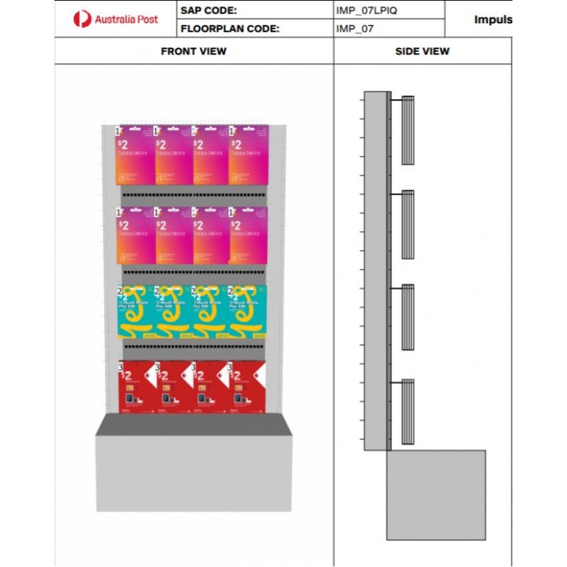 Click here to view or download the planogram -Impulse Queue Unit 7 (Double Sided Unit) - $2 SIM Cards