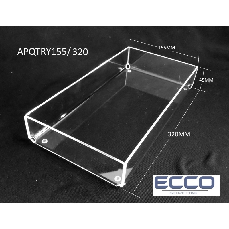 Acrylic shelf tray 155mm wide x 320mm deep x 45mm high
